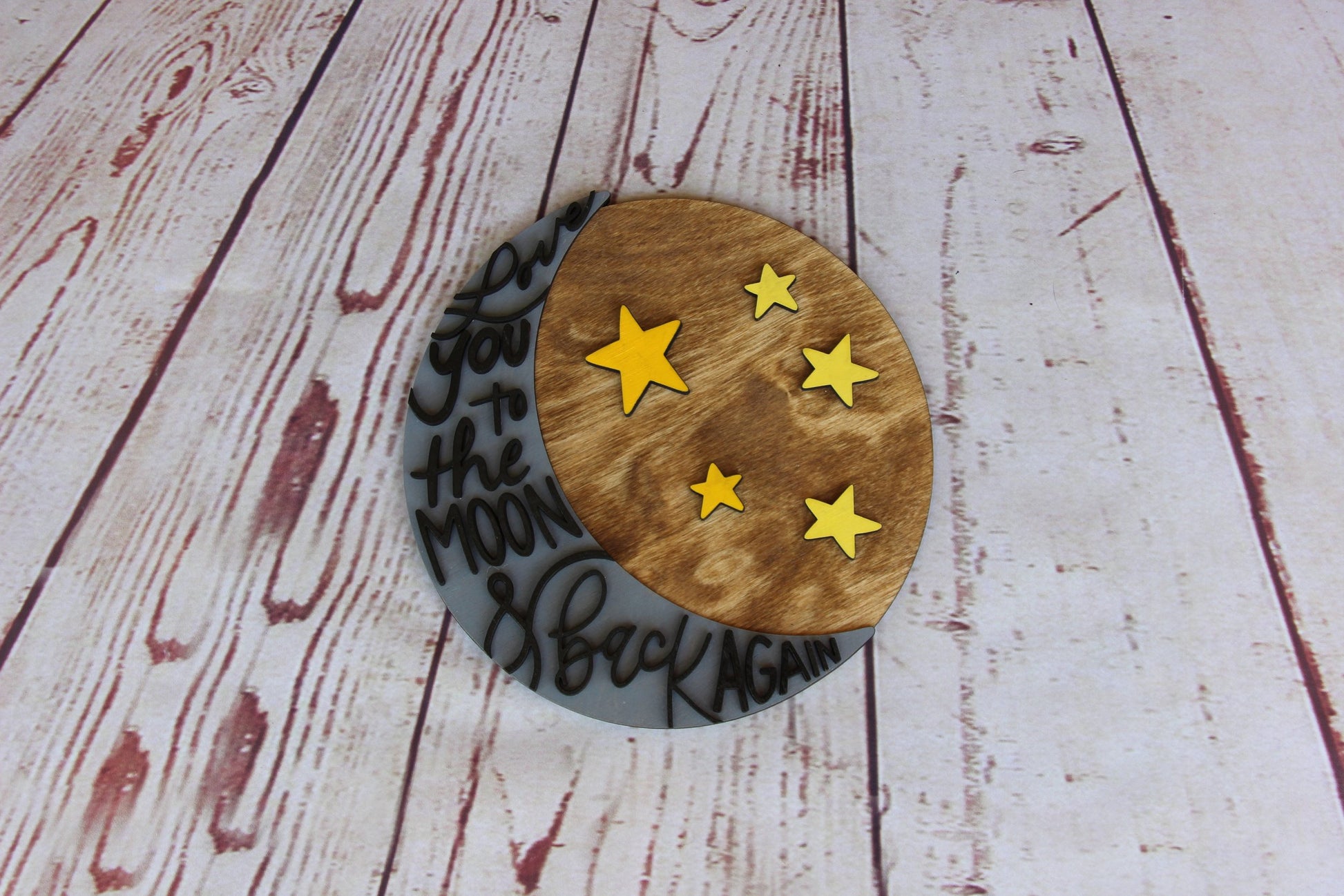 Love you to the Moon and Back Again, shelf sitter is perfect for any nursery.