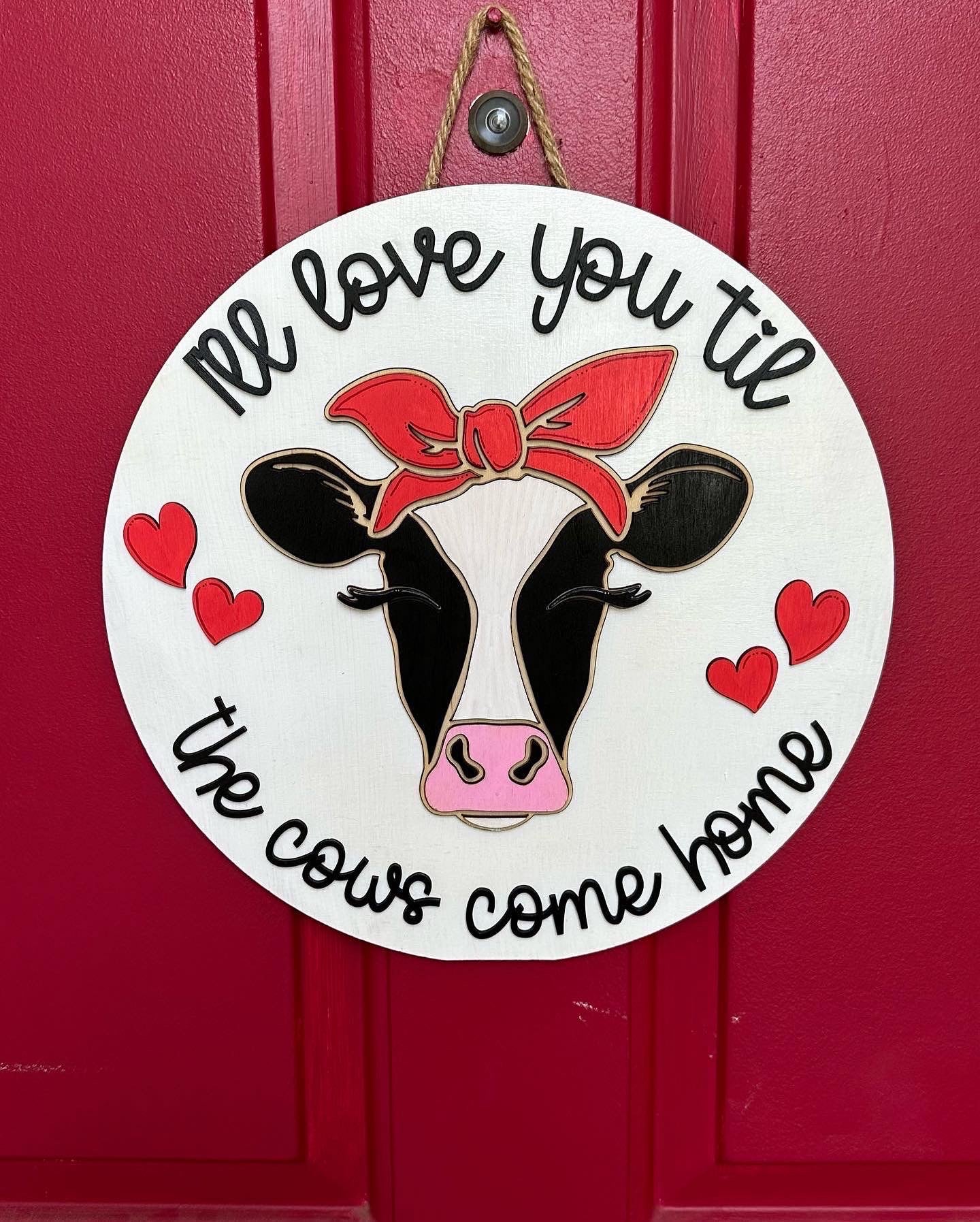 Become part of our heard, I'll love you til the cows come home, door hanger