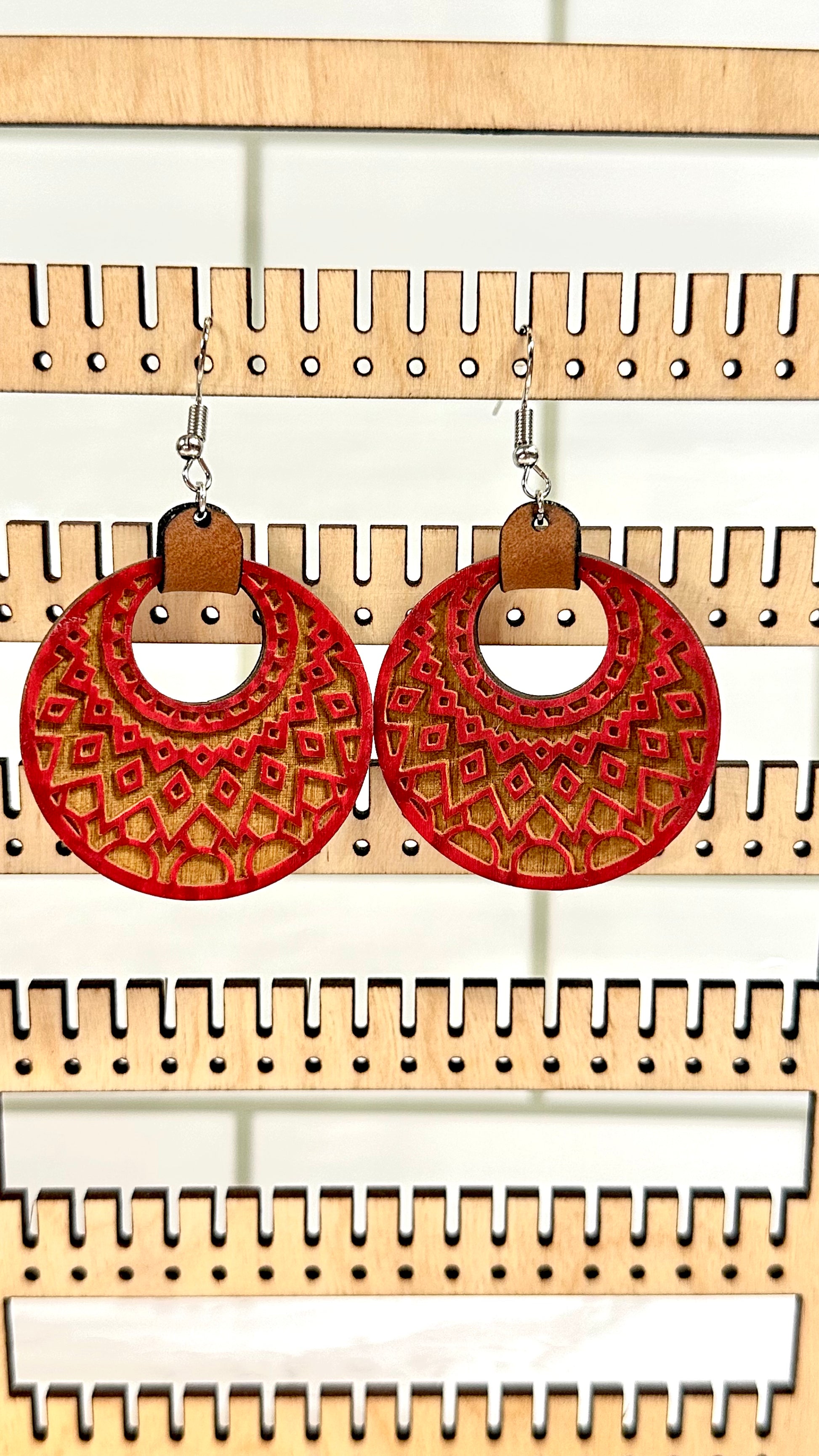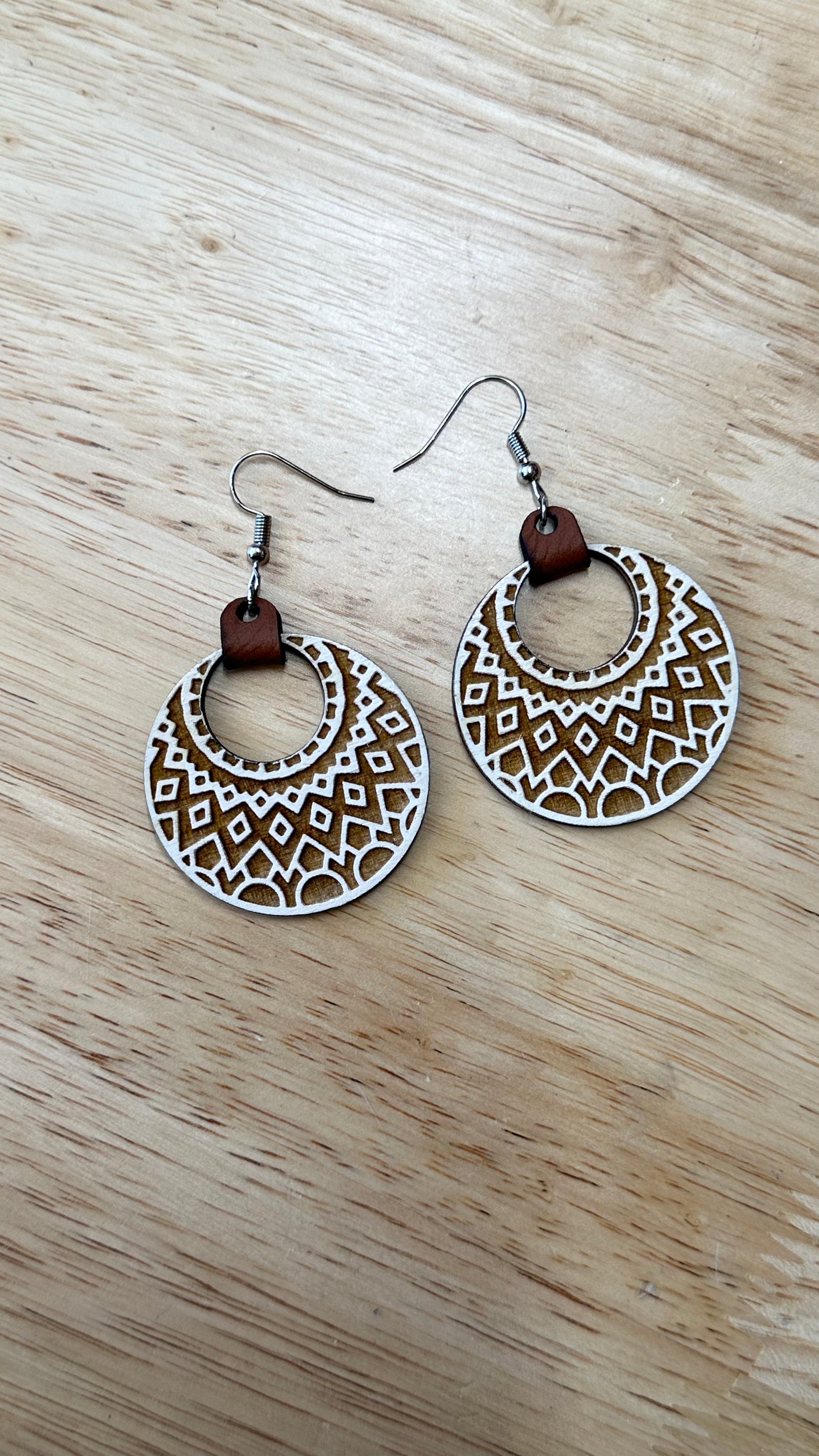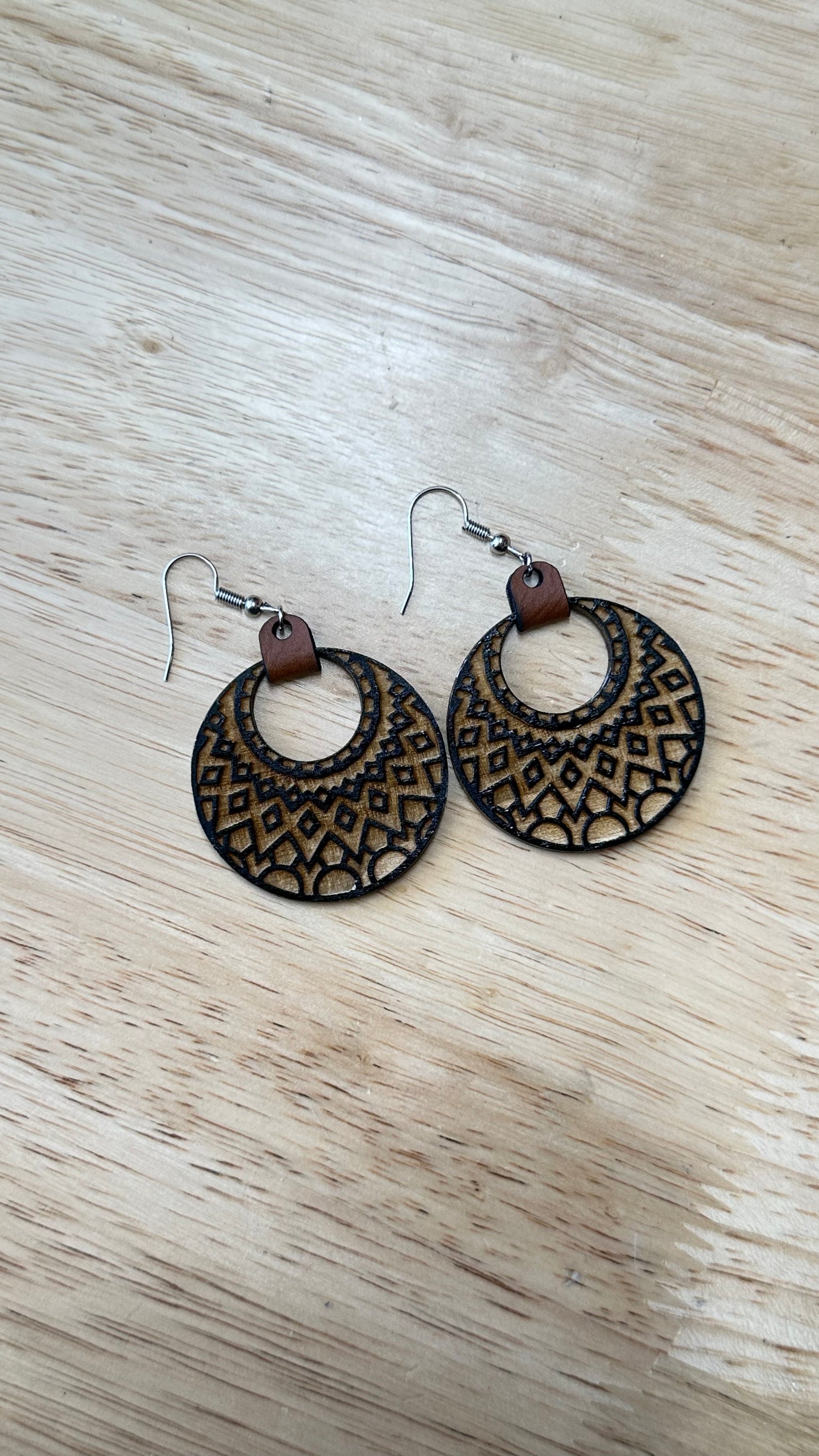Diamond pattern round earring with faux leather stainless steal hardware and removable rubber stopper