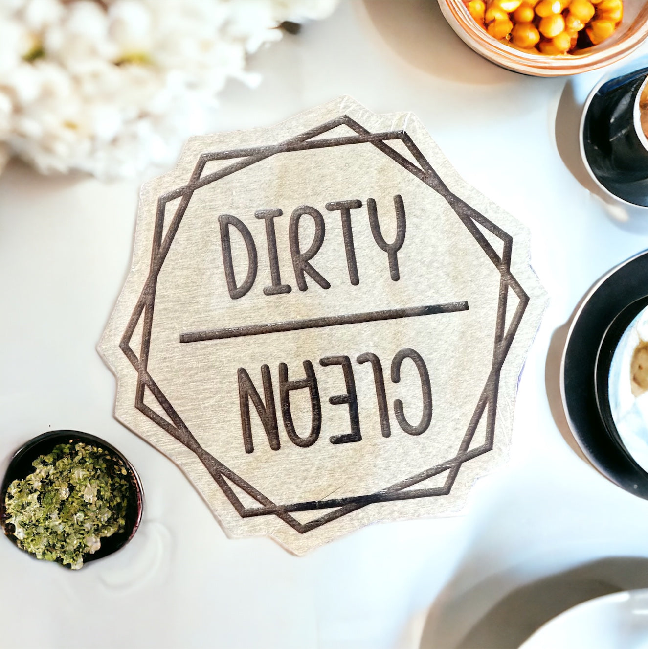 Introducing our beautifully crafted Wooden Dishwasher Magnet, designed to effortlessly communicate the status of your dishes with a touch of rustic charm. This dual-sided magnet features elegantly engraved "Dirty" and "Clean" labels, allowing you to easily indicate whether your dishes are ready to be loaded or have just been washed.