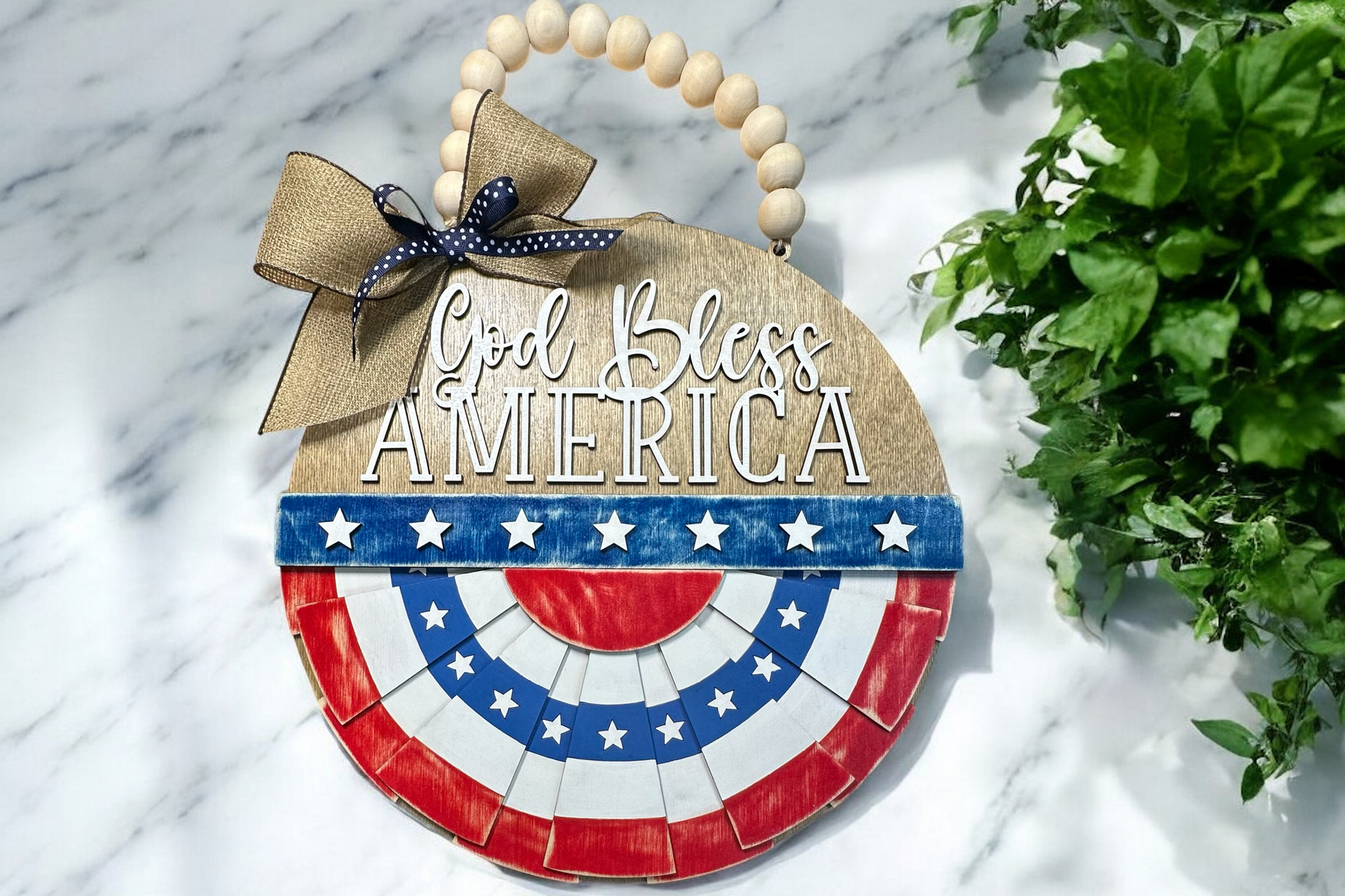 Each piece is uniquely crafted, ensuring that no two signs are exactly alike. The heartfelt message "God Bless America" is prominently displayed, making it a meaningful addition to your entryway or porch. Easy to hang and perfect for any season, this hand-painted bunting sign is a wonderful way to express your patriotic pride and welcome guests with warmth and sincerity.