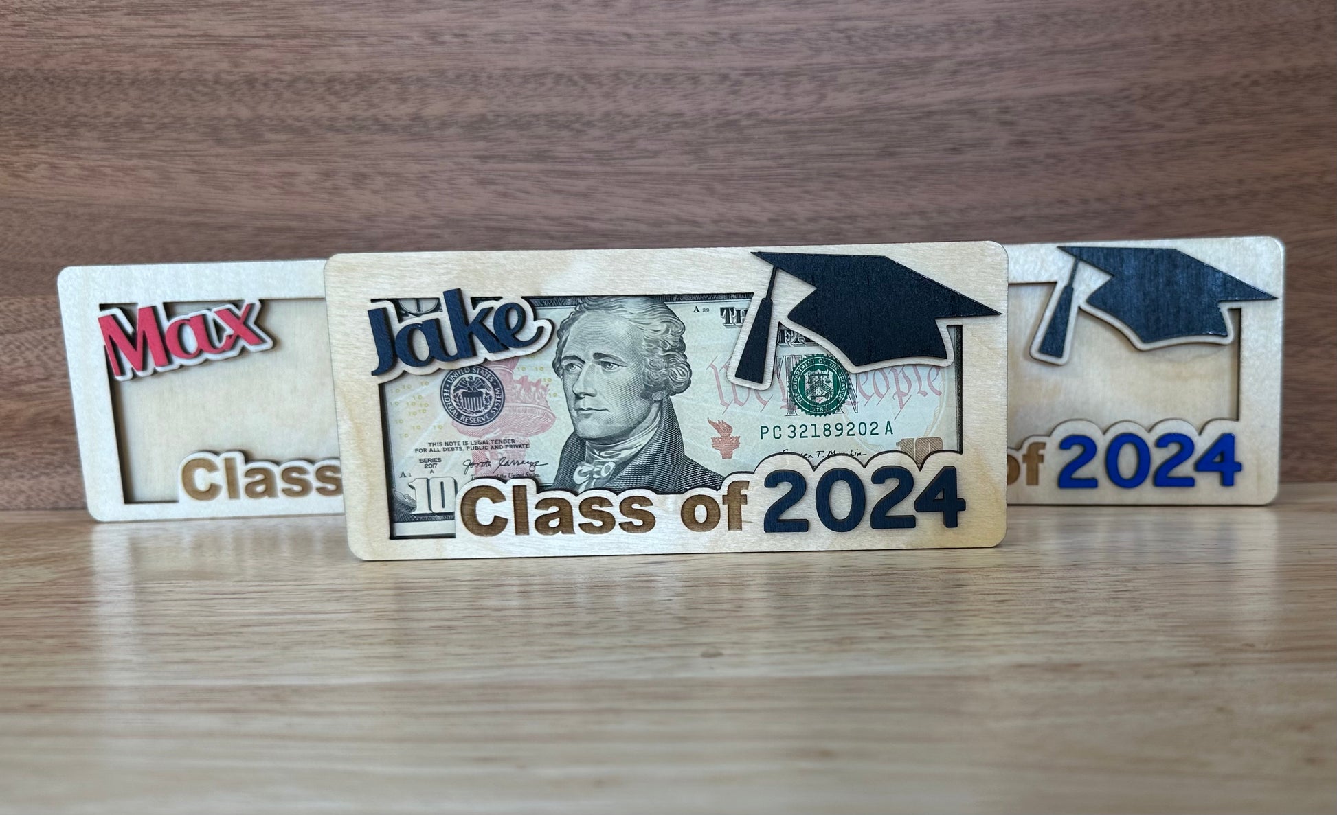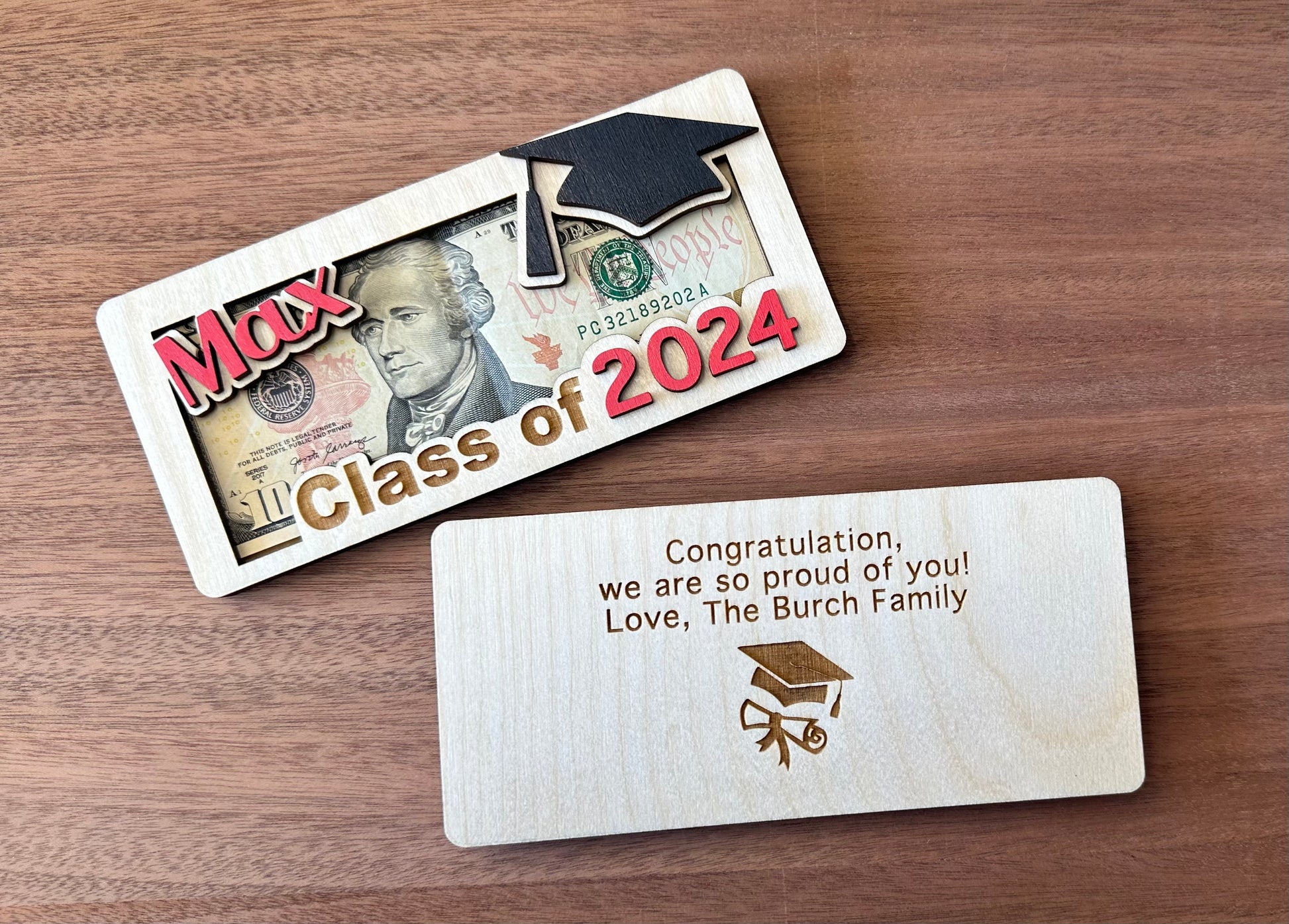 Introducing our personalized graduation money holder keepsake, crafted from high-quality wood to commemorate this special milestone in a unique and meaningful way. This elegant and durable piece is designed to securely hold monetary gifts while serving as a cherished keepsake for years to come. Personalize it with the graduate's name, graduation date, or a heartfelt message to make it truly one-of-a-kind. Celebrate their achievements with a gift that combines functionality and sentimentality. Order yours today and create a lasting memory of this significant occasion.
