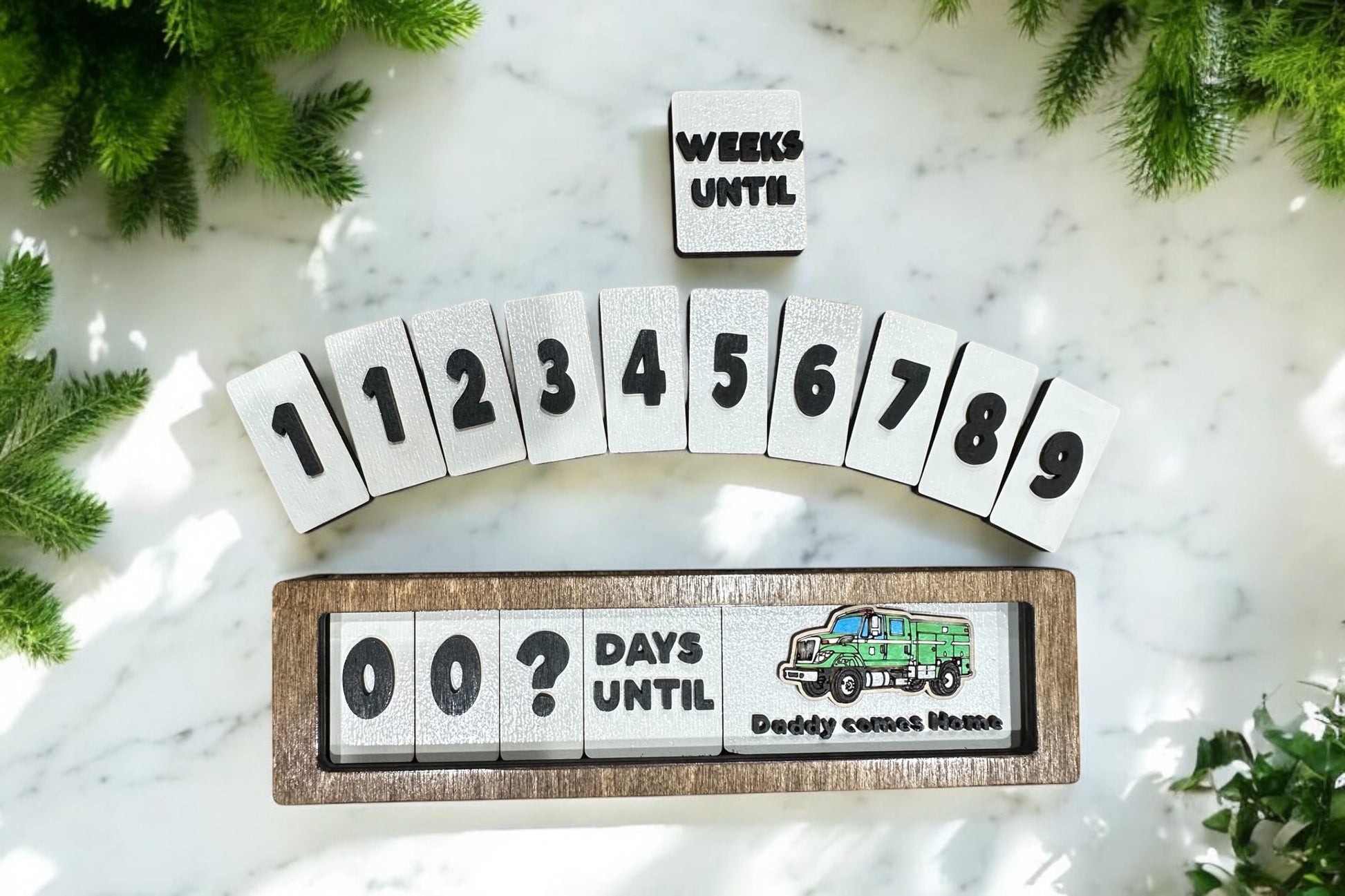 Introducing the "Hero's Homecoming Countdown" - a charming and interactive wooden countdown designed to bring excitement and anticipation to the return of your loved one. Crafted with high-quality wood, this countdown features a whimsical design that adds a touch of warmth to any space.