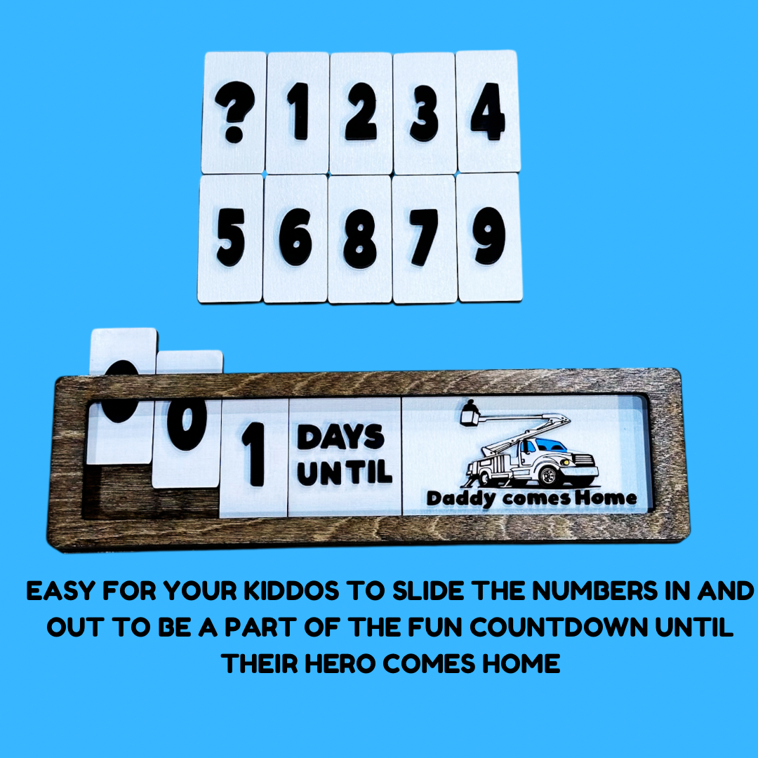 Introducing the "Hero's Homecoming Countdown" - a charming and interactive wooden countdown designed to bring excitement and anticipation to the return of your loved one. Crafted with high-quality wood, this countdown features a whimsical design that adds a touch of warmth to any space.