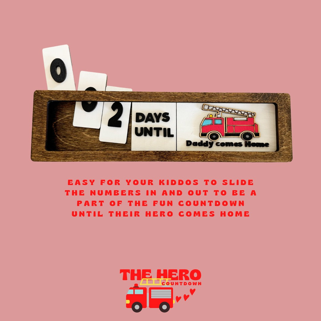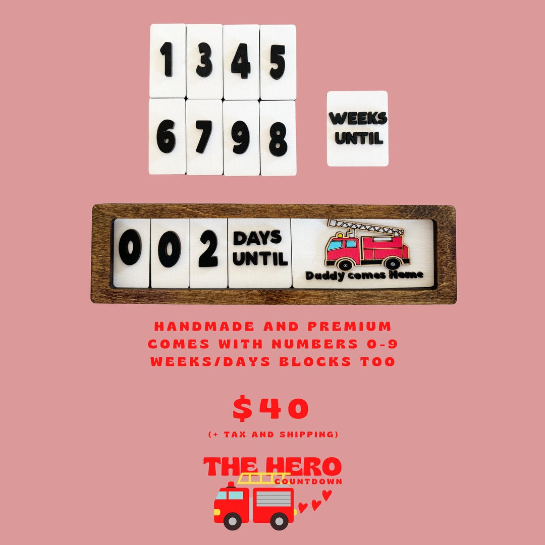 Introducing the "Hero's Homecoming Countdown" - a charming and interactive wooden countdown designed to bring excitement and anticipation to the return of your loved one. Crafted with high-quality wood, this countdown features a whimsical design that adds a touch of warmth to any space.