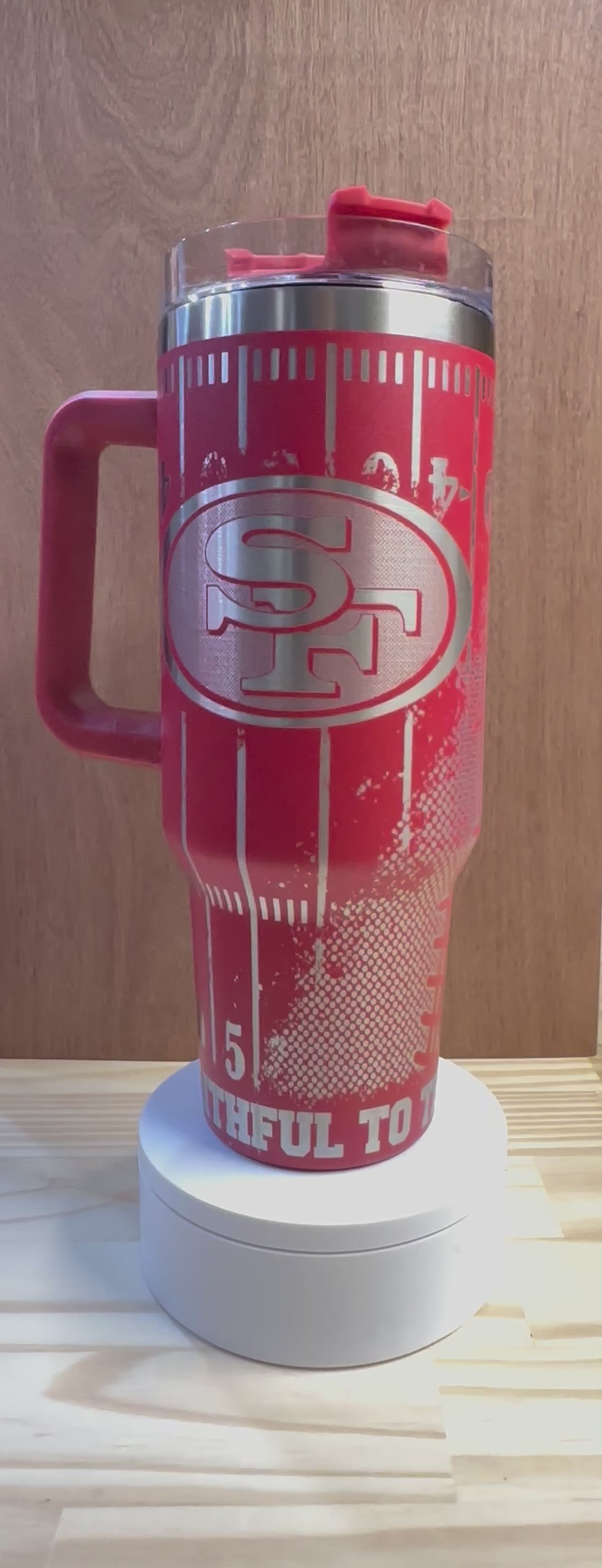The San Francisco 49ers 40oz tumbler is the perfect accessory for any Super Bowl party or any other occasion. This tumbler is designed with the iconic San Francisco 49ers logo, showcasing your team pride in style. With a generous 40oz capacity, it can hold plenty of your favorite beverage, keeping it cold or hot for extended periods of time. The tumbler is made from durable materials, ensuring long-lasting use and easy cleaning. Whether you're cheering on the 49ers during the big game or simply enjoying a drink with friends, this tumbler is a must-have for any fan.