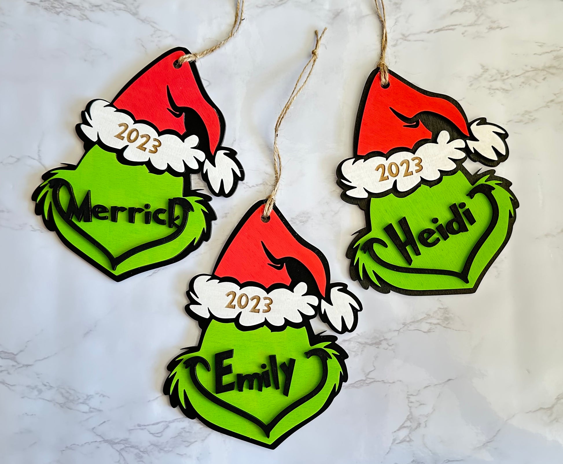 This cute personalized Grinch face is what every tree needs. Can be made with or without the year. ***MUST ADD CUSTOMIZATION IN NOTES AT CHECK OUT***