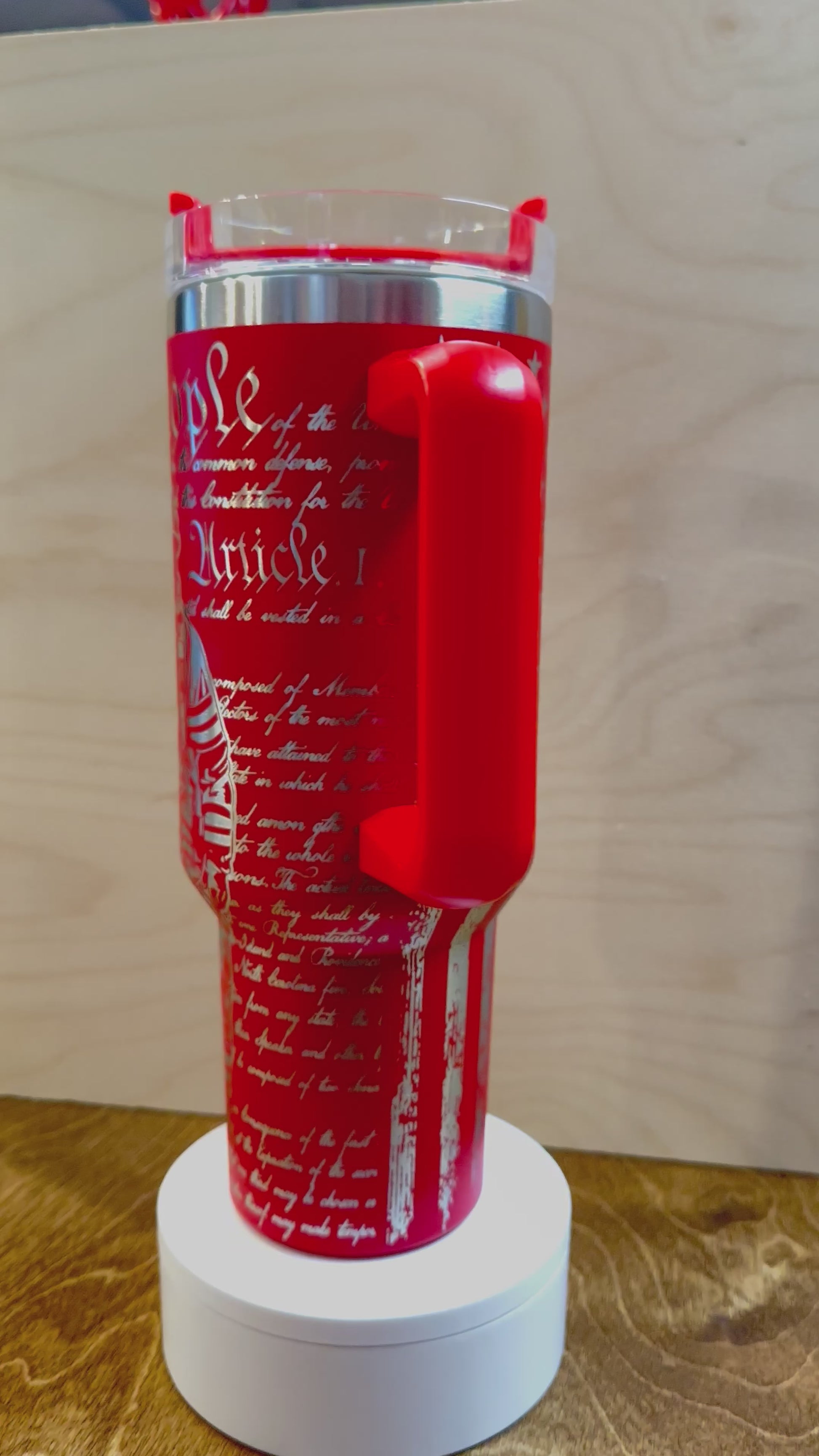 The 40 oz tumbler is a high-quality, durable drinkware item that is perfect for keeping your beverages hot or cold for extended periods of time. This particular tumbler is engraved with the phrase "We the People" and a fireman design, adding a patriotic and firefighter-themed touch to its appearance. The engraving is done with precision and attention to detail, ensuring a long-lasting and visually appealing design. Whether you're a fireman yourself or simply want to show your support for these brave individuals, this tumbler is a great choice. Its large capacity allows for ample liquid storage, making it ideal for outdoor activities, travel, or everyday use. This is a NON BRANDED TUMBLER.