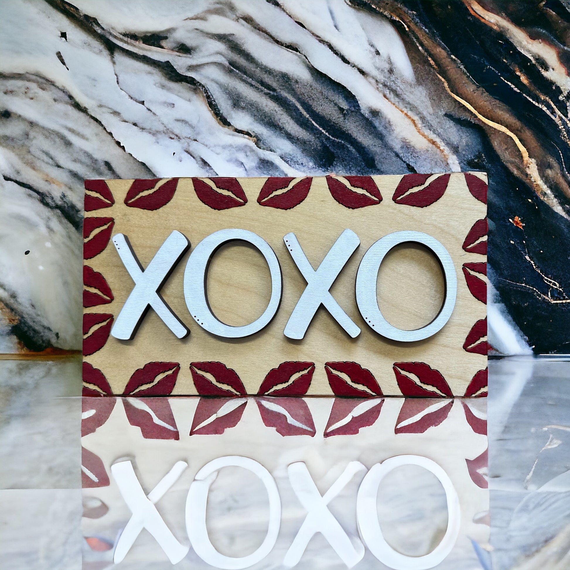 Our delightful wooden sign adorned with the sweet sentiment "XOXO" and charming kisses scattered throughout. This whimsical piece adds a touch of love and affection to any space, making it a perfect addition to your home decor. Crafted from high-quality wood, this sign is not only visually appealing but also durable and long-lasting. Hang it in your bedroom, living room, or any other area where you want to spread love and positivity. Whether as a gift for a loved one or a treat for yourself, this "XOXO" wooden sign is sure to bring smiles and warmth to your surroundings. Embrace the power of love with this adorable and stylish piece of decor.